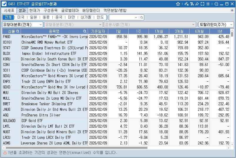 6461 ETF 글로벌ETF>성과