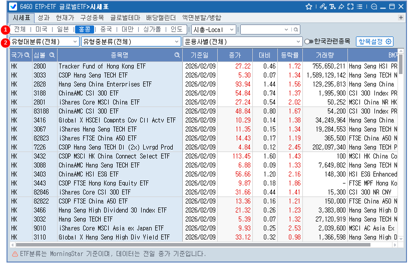1 미국 ETF의 현재가 : 지연 or 종가, 일본/홍콩/중국 : 지연, 대만/싱가폴/인도 : 종가