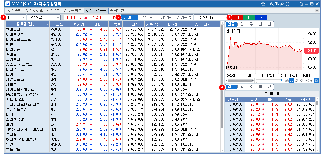 1 미국 대표 지수(3종) 구성종목 선택 조회