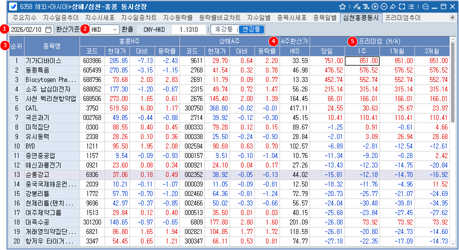 5 홍콩 H주 <-> 상해 A주 프리미엄 제공