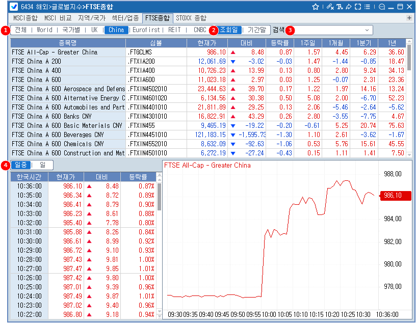 4 각 지수별 일중 추이 및 일별 추이 조회