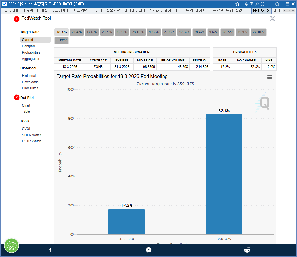 1 CME 제공 미래 FED Meeting의 Target Rate 확률을 제공합니다. 2 FED DOT PLOT을 제공합니다.