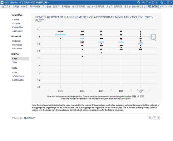 CME 제공 FED WATCH 및 DOT PLOT을 제공합니다.