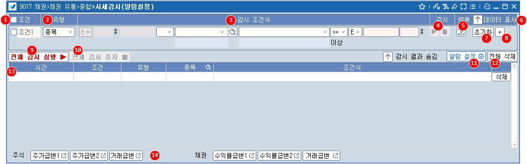 9 조건앞 체크박스에 체크되어있는 감시조건들을 한번에 실행합니다.