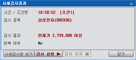 - 종목감시 : 한개 종목의 시세를 감시합니다.