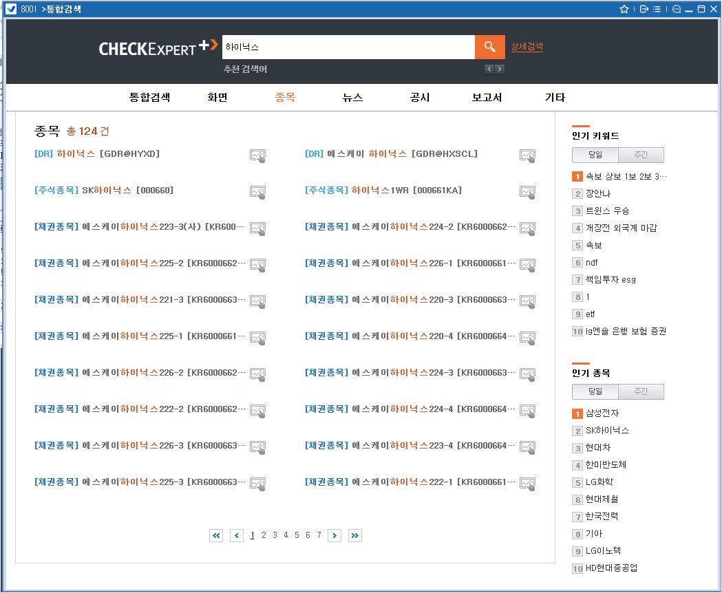 기존에 각각의 화면에서 원하는 정보를 찾아야 했다면 이제는 8001>통합검색화면에서 하나의 키워드에 해당하는 화면/종목/뉴스/공시/보고서의 결과를 한번에 검색할 수 있습니다.