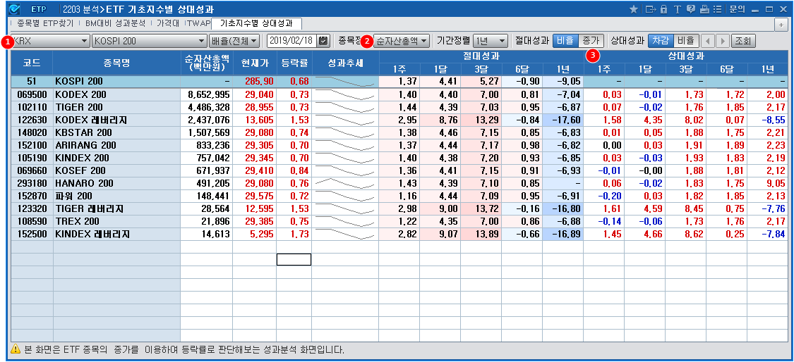 2203 - ETP분석>ETF 기초지수별 상대성과