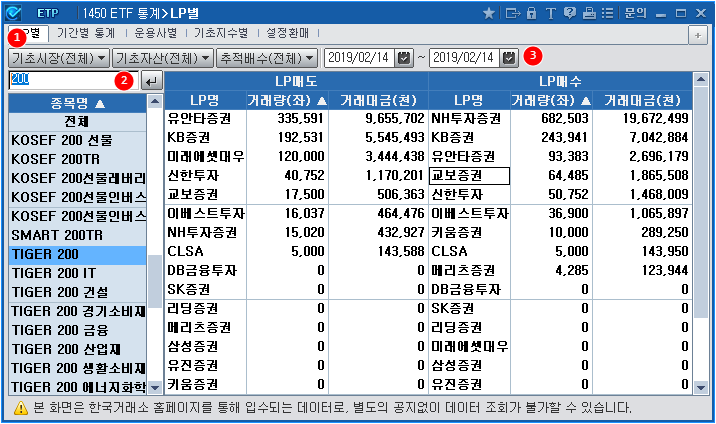 1450 - ETF통계>ETF LP별 통계1443 - ETF시세>시세표