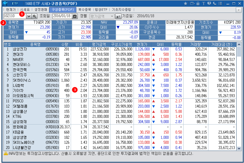 1440 - ETF시세>현재가1448 - ETF시세>구성종목(PDF)