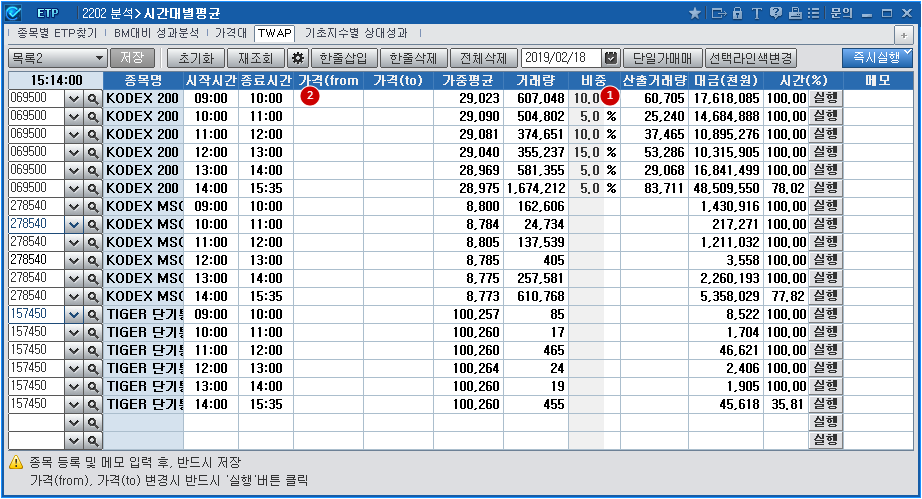1지정한 여러 시간대에 대해 비율별 거래량 규모를 계산함으로서 당일 트레이딩 규모를 산정